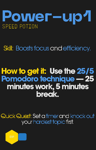 From unlocking "XP Systems" to defeat procrastination, to equipping "Memory Potions" for sharper recall, this guide transforms revision into a challenge you can actually win. Perfect for students aged 14–16 who want studying to feel less like a chore and more like a boss battle against exams.