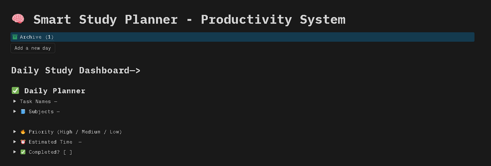 ✅ Daily Study Dashboard – plan your to-dos & priorities